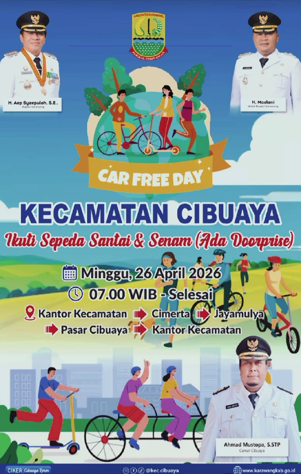 KARAWANG – Pemerintah Kecamatan Cibuaya, Kabupaten , akan menggelar kegiatan Car Free Day (CFD) yang dipusatkan di wilayah Kecamatan Cibuaya pada Minggu, 26 April 2026.