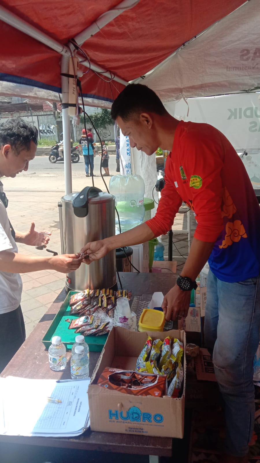 Koordinator lapangan Tim Rescue Karang Taruna Kabupaten Karawang, Utte Listanto, terlihat aktif memantau situasi sekaligus melayani para pemudik yang singgah di posko. Ia didampingi oleh jajaran tim Rescue, salah satunya Fahmi, yang turut membantu memberikan pelayanan kepada masyarakat.