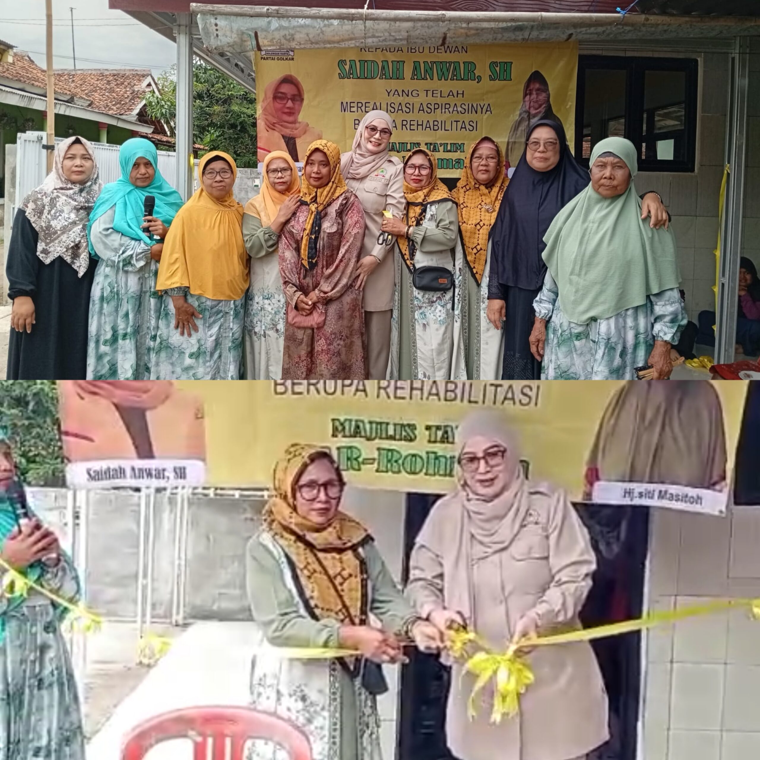 Sementara itu, pengurus Majlis Ta’lim Ar-Rohmah, Hj. Siti Masitoh, menyampaikan apresiasi dan terima kasih atas perhatian serta dukungan yang telah diberikan sehingga rehabilitasi majlis ta’lim dapat terealisasi.