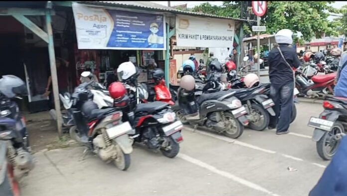 Area depan Mapolres Karawang kerap dipenuhi kendaraan roda dua maupun roda empat yang parkir hingga melebar ke bahu jalan. Bahkan, di titik yang telah terpasang rambu larangan parkir, kendaraan tetap terparkir.