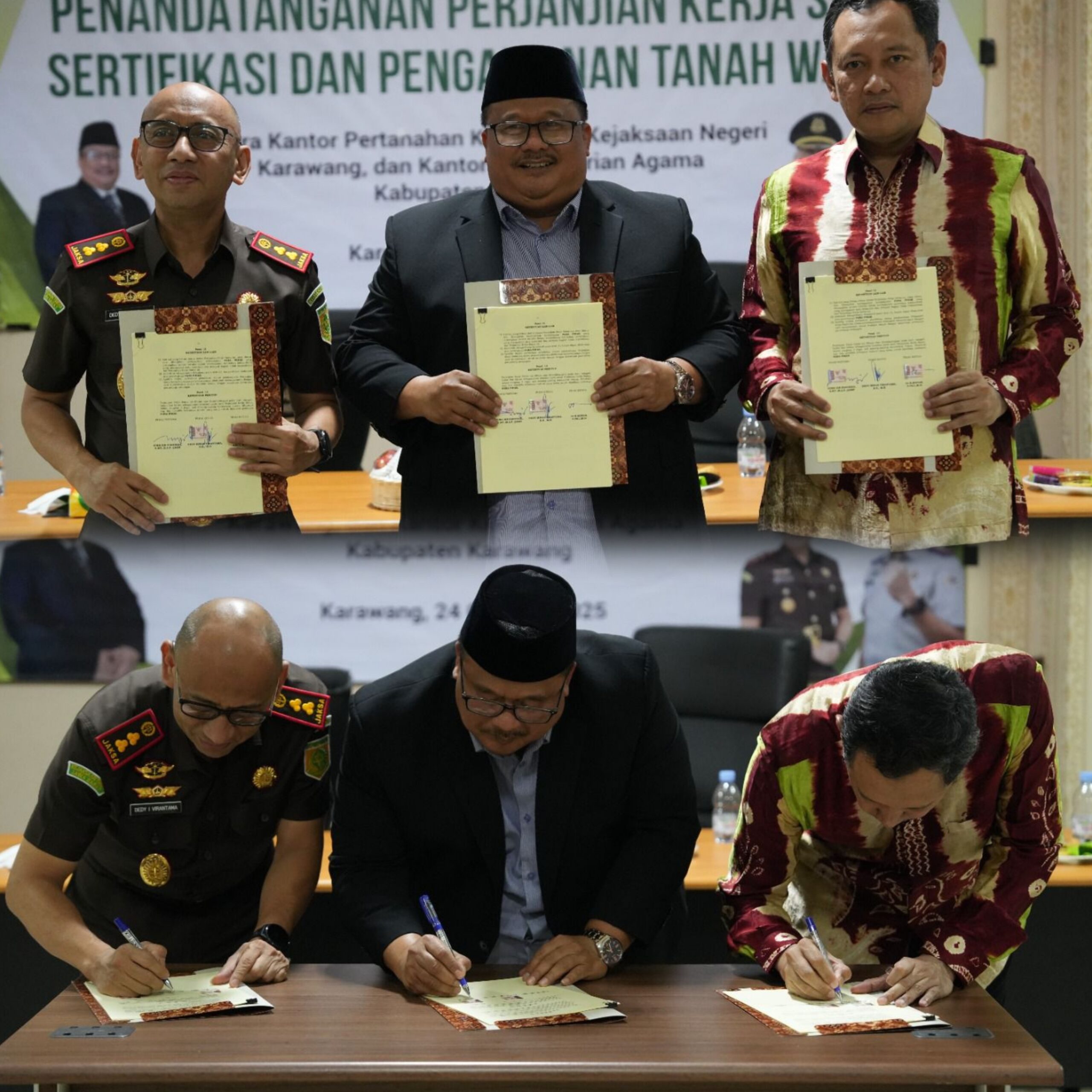 Penandatanganan PKS ini menjadi momentum penting untuk meningkatkan sinergi antara ketiga instansi dalam upaya percepatan pensertifikasian dan pengamanan tanah wakaf di Kabupaten Karawang.