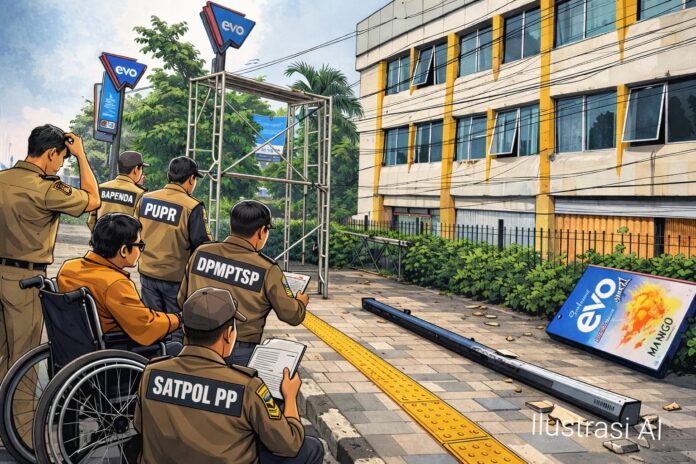 Reklame itu berdiri di ruang publik yang jelas berada di bawah pengawasan Dinas PUPR, namun keberadaannya tidak segera terdeteksi.